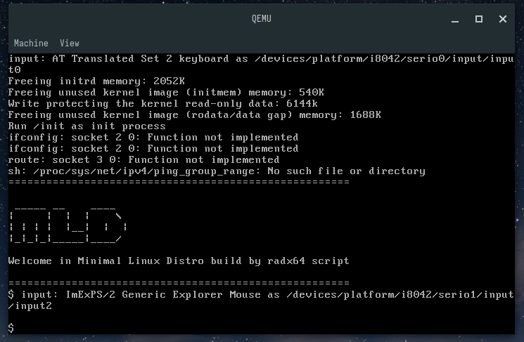 And there we go, a functional minimal Linux distro with tinyconfig kernel!